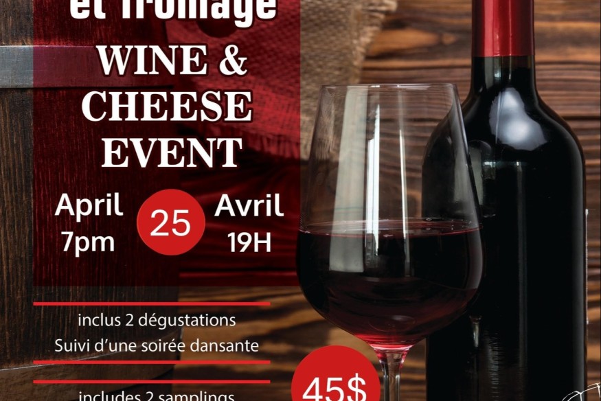 Le Comité des loisirs de Bourget est de retour avec ses populaires soirées Vin et Fromage. La prochaine aura lieu le samedi 25 avril à 19 h. L’événement comprend deux dégustations, suivies d’une soirée dansante. Les billets sont au coût de 45,00 $ et sont disponibles chez Bourget Home Hardware....