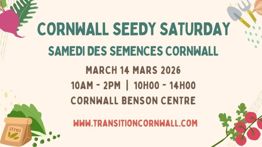 Transition Cornwall+ vous invitent à assister à la 11e édition annuelle du Samedi des semences Cornwall le samedi 14 mars au Centre Benson.