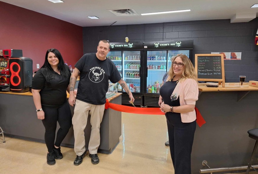 Hier soir, a eu lieu l’inauguration officielle du nouveau bar situé à l’intérieur du complexe J.R. Brisson de Casselman, le Viking’s Den. Pour l’occasion, un match de hockey opposant les Vikings de Casselman aux Panthères d’Embrun se déroulait en même temps. De nombreuses personnes se sont déplacées pour assister à l' événement. La mairesse de Casselman, Geneviève Lajoie, était également présente. Mike Seguin, propriétaire du Viking’s Den, a procédé au découpage du ruban entouré de membres de son personnel. Le Viking’s Den diffusera également toutes les parties des Vikings de Casselman ainsi que celles des autres équipes de la EOJHL.