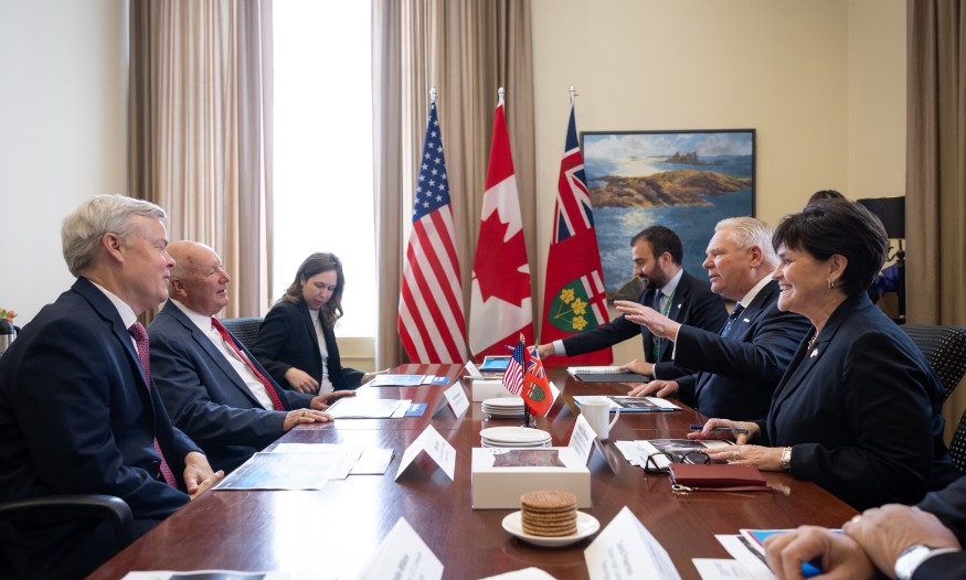 Le premier ministre de l'Ontario, Doug Ford, s’est entretenu hier avec l’ambassadeur des États-Unis, Pete Hoekstra. À la suite de cette rencontre, Ford a déclaré que les États-Unis n’avaient pas respecté leur promesse en réinstaurant des tarifs de 50 % sur l’acier et l’aluminium. Il rappelle qu’un accord prévoyait l’abandon de cette mesure en échange de la suspension d’une surcharge ontarienne sur l’électricité. Déçu et inquiet, Ford espère encore un changement de cap de la part du président Trump. Entre-temps, l’Ontario maintient ses représailles économiques, notamment le retrait de l’alcool américain des tablettes de la LCBO tant que les tarifs resteront en vigueur.