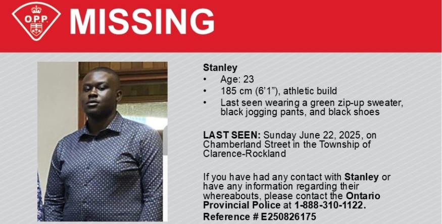 La Police provinciale de l'Ontario du détachement de Russell, sollicite l’aide du public pour retrouver un homme de 23 ans porté disparu.