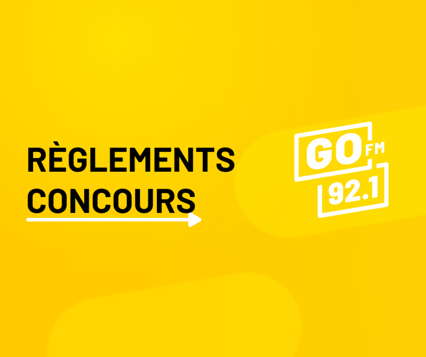 PÉRIODE DU CONCOURS : Le 92.1 GO FM tient de multiples concours tout au long de l’année en direct sur sa station de radio sur son site Web et sur Facebook. Pour ces concours, la durée, les dates et la période du concours seront indiquées par l’animateur en ondes au moment des concours et/ou sur le site Web et/ou sur Facebook.