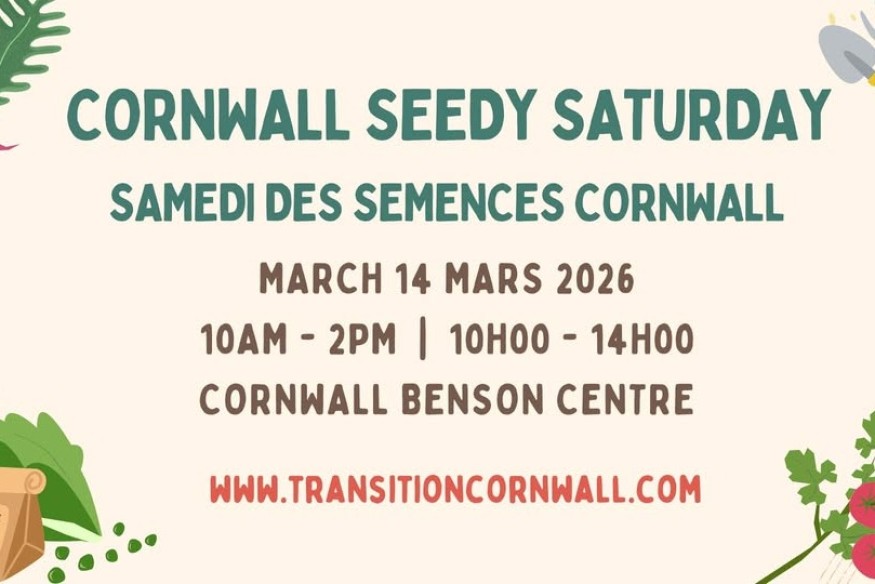 Transition Cornwall+ vous invitent à assister à la 11e édition annuelle du Samedi des semences Cornwall le samedi 14 mars au Centre Benson. Cet événement GRATUIT et familial est une célébration du printemps, des semences et du jardinage, et de la durabilité environnementale. À QUOI S'ATTENDRE :Vendeurs locaux de semences et de plantes - Venez chercher vos semences de printemps, vos pl...