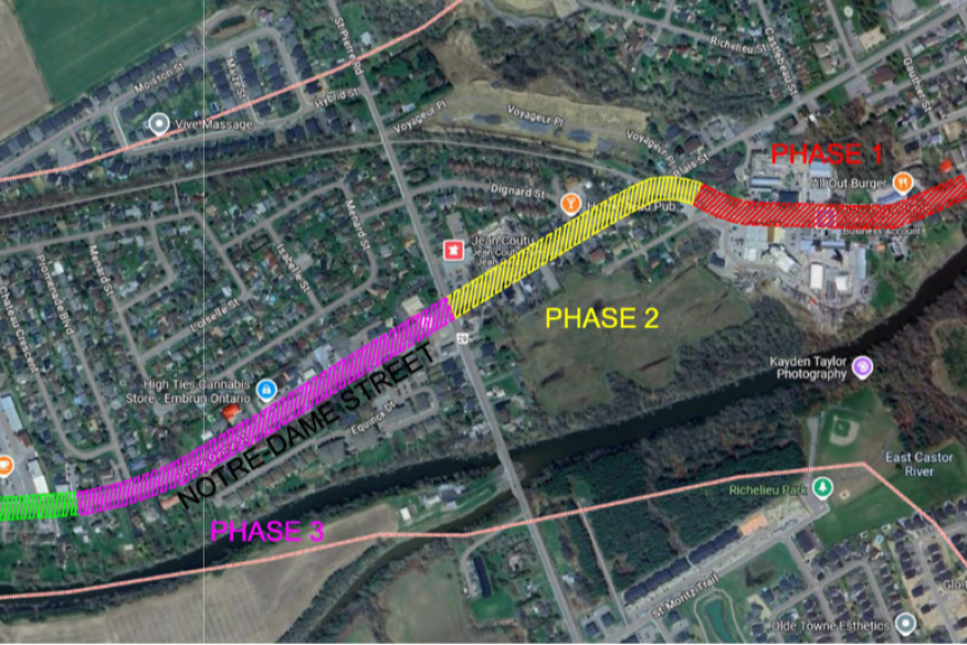 La Municipalité de Russell souhaite informer les citoyens qu’à Embrun, la circulation en alternance débutera sur la rue Notre‑Dame le vendredi 27 juin, et ce, jusqu’au mois de novembre 2025. La circulation sera en alternance de la rue Jeanne‑d’Arc jusqu’à la rue Lapalme pour la phase 1 du remplacement des égouts pluviaux. Les voies seront alternées pour la durée des travaux, et les automobilistes doivent s’attendre à des délais ainsi que prévoir une route alternative si possible. (Photo : Municipalité de Russell)