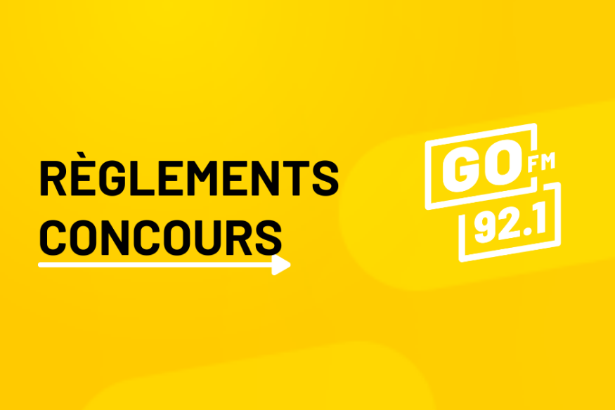 « Concours du 92.1 GO FM» Le présent règlement s’applique aux concours qui vous sont offerts par le 92.1 GO FM qui sont tenus en direct sur les ondes, sur le site web ou sur les médias sociaux, à moins qu’un règlement particulier ne s’applique à un concours donné. Veuillez noter que certains concours promus sur la station de radio ou le site Web du 92.1 GO FM peuvent vous être offerts par la radio en collaboration avec un autre commanditaire. PÉRIODE DU CONCOURS : Le 92.1 GO FM tient de multiples concours tout au long de l’année en direct sur sa station de radio sur son site Web et sur......